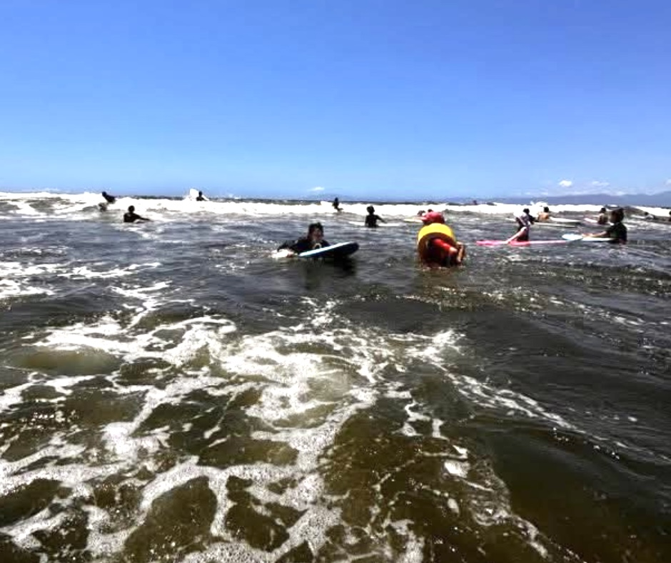 第2部は、海でのニッパーボード体験!当日の波はかなり高くて波数も多く、直前までミミコーチと相談し開催を迷ったほどでしたが、引き潮のタイミングでもあり、なんとか決行🌊波をかわすだけでも大変なハードな海でしたが、波に乗れるとみんな最高の笑顔!最後まで楽しんでいただけました。